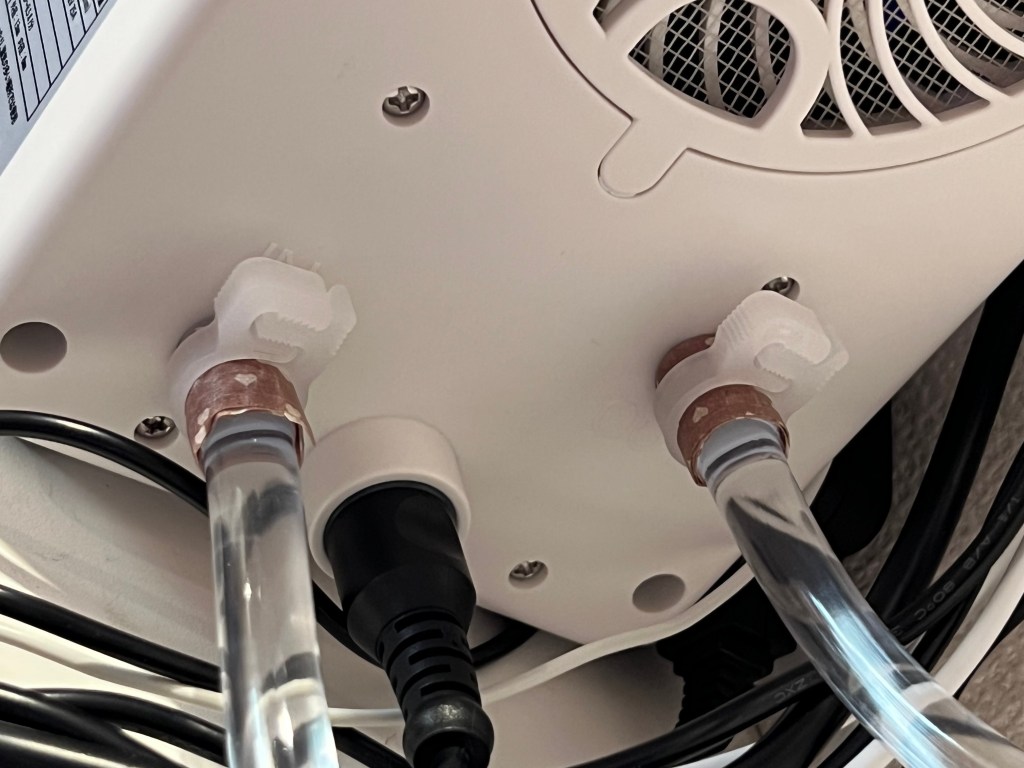 ホースは外径が小さいものを使用したため、クーラー付属のホースクリップでしっかり固定できません。