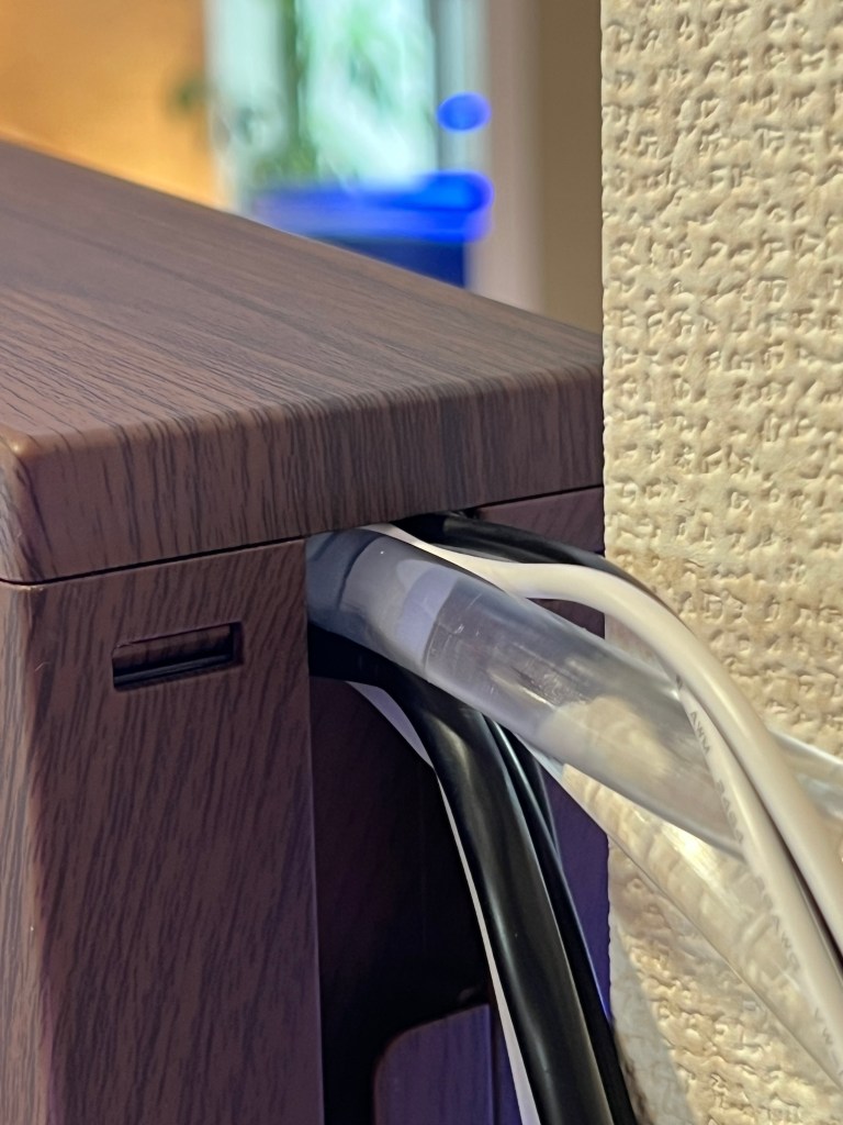 こんな状態なので、ろ過槽背面にあるケーブルの抜け穴に余裕はありません。