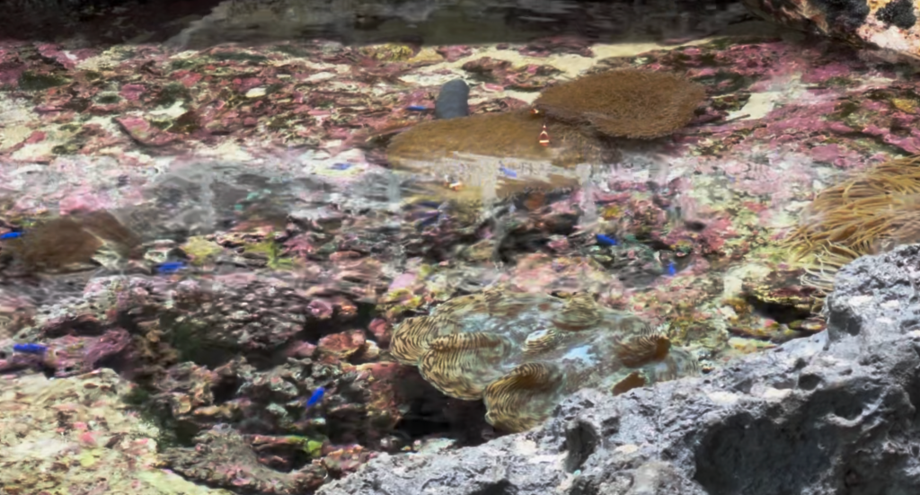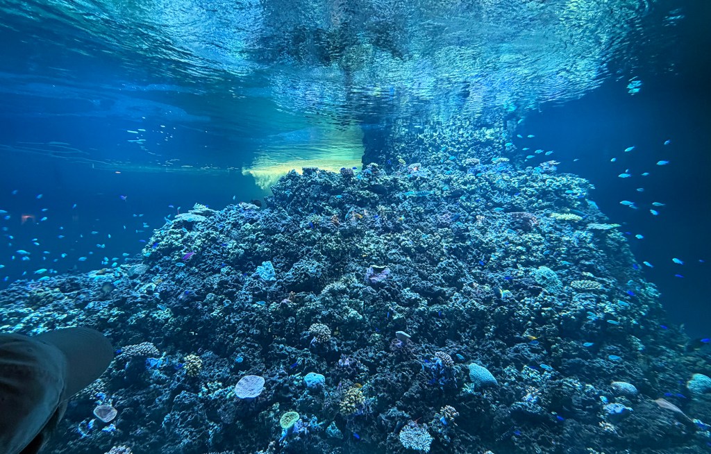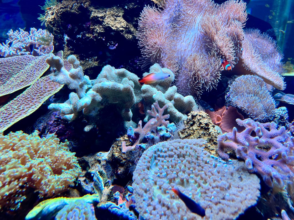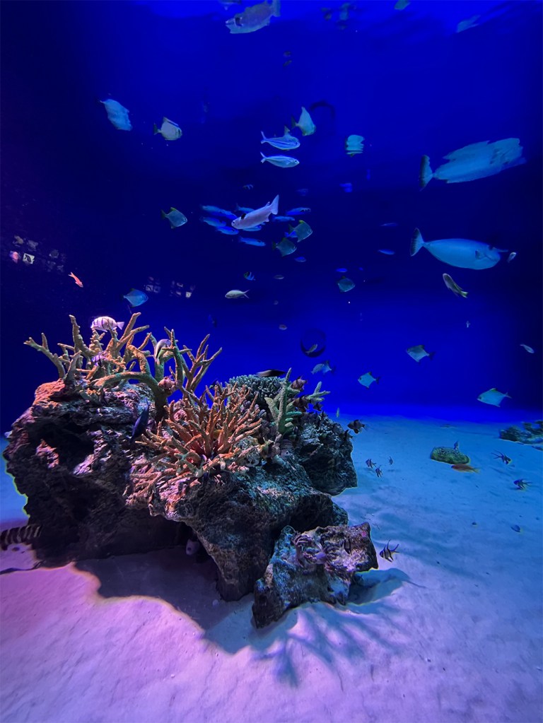 前回訪れたときの写真と比べると、大きなナポレオンフィッシュもいなくなり、チンアナゴたちも数が減り、サンゴ礁水槽の展示が寂しくなったという印象は否めませんでした。