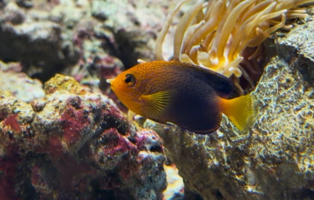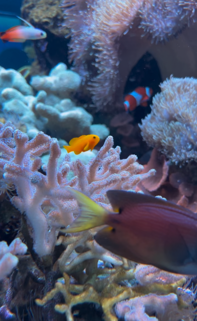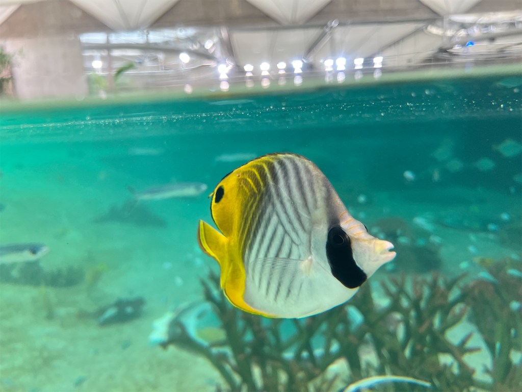 自然光も多く取り入れた明るい展示で、小笠原の水槽にはユウゼンやレンテンヤッコもいます。