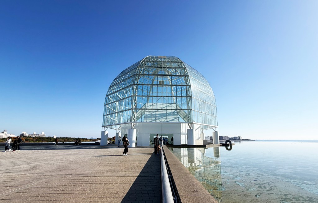 東京湾を臨む開放的なガラスドームのエントランス、サメ水槽など様々な角度から見られる立体的な構造、素敵な建築物はいつの時代も新しさを感じさせてくれます。